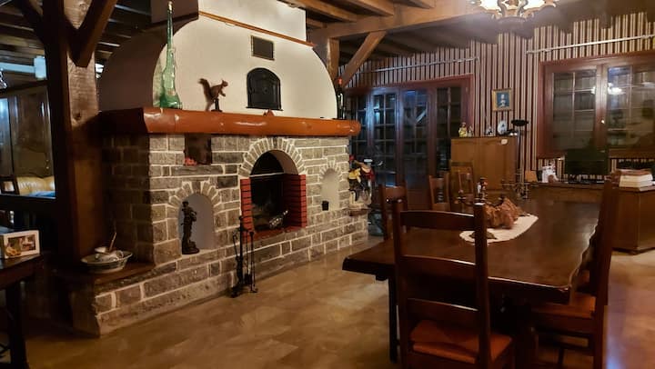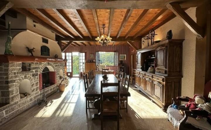 Vila kubwa iliyo na bwawa la kuogelea.