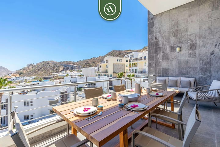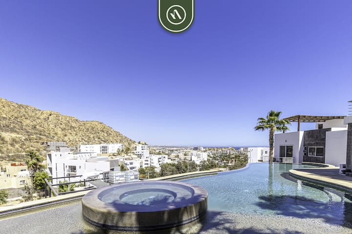Kama mgeni wetu, utakuwa na ufikiaji wa vistawishi kwenye eneo, ikiwemo bwawa la pamoja lisilo na kikomo kwa ajili ya burudani alasiri kwenye jua. Wakati huo huo, ukumbi wa mazoezi ulio na vifaa kamili unahakikisha utaratibu wako wa mazoezi ya viungo bado haujaingiliwa. Wape marafiki changamoto kwa duru ya gofu ndogo, waache watoto wacheze kwenye uwanja wa michezo wa watoto, au wakusanyike karibu na moto- kwa jioni zenye starehe chini ya anga la Cabo. Gundua jiko lililo na vifaa kamili tayari kwa ajili ya jasura za mapishi na upumzike sebuleni kwa kutumia televisheni mahiri kwa ajili ya burudani. Kiyoyozi katika kila chumba huhakikisha mapumziko mazuri kutoka kwa jua la Cabo na wafanyakazi wetu wa usalama wa saa 24 huhakikisha utulivu wa akili wakati wote wa ukaaji wako.