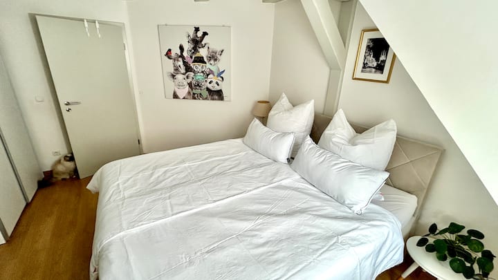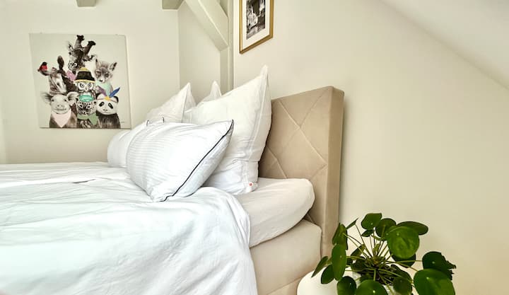 Hey! Mimi ni Julia (40) - mama wa binti 2, mpenzi wa paka 4 na anapenda kuwa mhudumu! Pia ninapenda sana kuruhusu watu wa tamaduni zote kukaa nasi kwa muda mfupi ili kujisikia vizuri, kusikiliza safari na uzoefu wao. Kama mwenyeji wa Brandenburg, Erfurt imekuwa nyumba yetu iliyopitishwa kwa miaka 10 sasa. Kitaalamu, nimejiajiri kama msanii na ninavutiwa na chapa nzuri zaidi za plasta za tumbo na watoto wachanga ambao huenda umewahi kuona. Ikiwa sivyo, hutapita hapa kwenye nyumba yangu kwa sababu utavuka studio yangu ili kufika kwenye chumba chako:-) Ni oasis kidogo iliyojaa msukumo na kumbukumbu za kihisia, zilizotengenezwa kwa mikono. Je, uko tayari kufanya hivyo? Gem yangu. Ina nishati nzuri. Ninapendelea mji wa zamani asubuhi, wakati jiji bado limelala, jua linachomoza polepole nyuma ya ukumbi wa mji, hewa inapumzisha ngozi. Waokaji hupata mikate yao ya joto nje ya tanuri, jirani na mbwa wake bado wamechoka kugeuza paja la kwanza na kufagia mashine ya kwanza ya kufagia juu ya soko la samaki. Wakati huo, ninaipenda! Lakini pia vinginevyo, mji wa kale una mengi ya kutoa jioni. Kila kitu kiko ndani ya umbali wa kutembea: migahawa, vilabu, matamasha, haki ya biashara, masoko... eneo ni kamili!