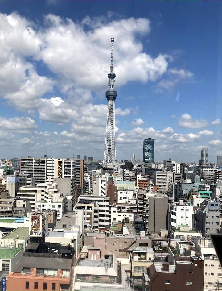 Ni fleti ndogo sana.Ni mwendo wa dakika 4 kutoka Kituo cha Kinshicho na treni ya dakika 2 kwenda Kituo cha Skytree cha Tokyo, na kuifanya iwe bora kwa ajili ya kutazama mandhari huko Tokyo.