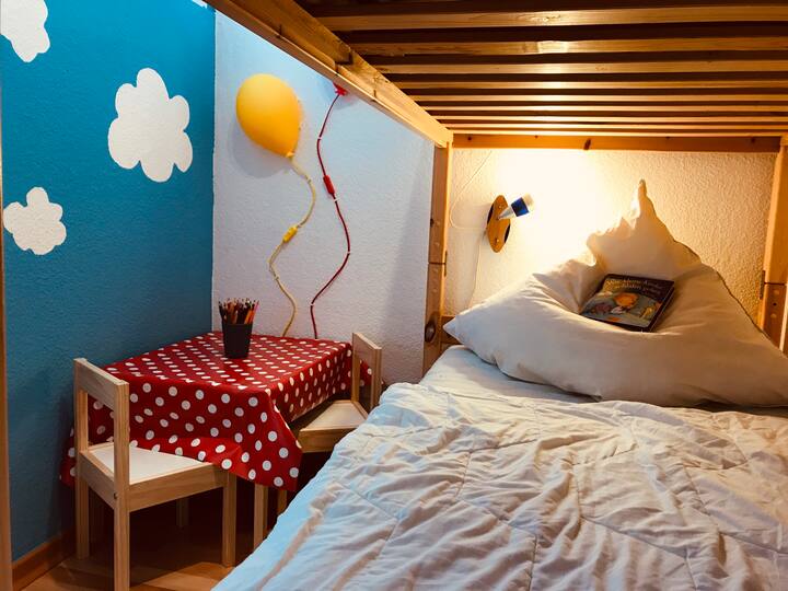 Tutakarabati chumba kidogo, tofauti cha watoto mwishoni mwa mwaka 2025. Mara baada ya kukamilika, itajumuisha kila kitu ambacho wageni wadogo na wakubwa wanaweza kuhitaji: kitanda cha ghorofa (140×200) chenye ngazi salama na chini yake kitanda kingine (90×140), ambacho kinaweza kutumika kama kitanda kizuri cha mtoto mchanga au sehemu nzuri kwa watoto wakubwa, na au bila reli za kitanda. Pia kuna nafasi ya kitanda cha mtoto cha ziada cha safari.