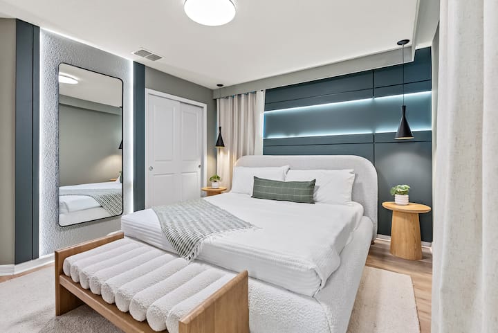 Fua taulo: Kwa mujibu wa mapendekezo ya usafi ya Airbnb na miongozo ya COVID-19, TAULO ya kufulia inachukuliwa kuwa kitu kinachoweza kutupwa na cha kibinafsi, kwa hivyo tunapendekeza ulete yako mwenyewe.
