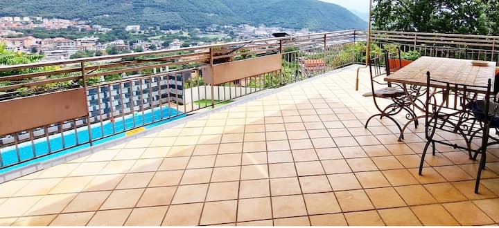 Vila iliyo na bwawa - vyumba 3 vya kulala - mtaro wenye mandhari
