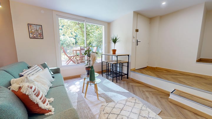 Furahia Paris na upumzike katika fleti hii maridadi kwenye ghorofa ya chini ya nyumba nzuri, yenye mtaro wa kujitegemea. Iko katika eneo tulivu na la mbao la makazi.