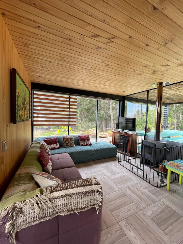 Nyumba nzuri huko Tunquen yenye bwawa na beseni la maji moto