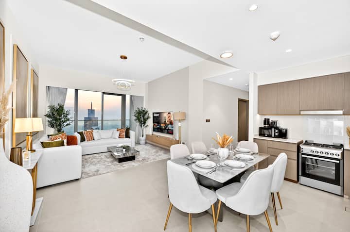 Luxe 2BR Escape | Mionekano ya Burj na Hatua za Kuelekea Dubai Mall