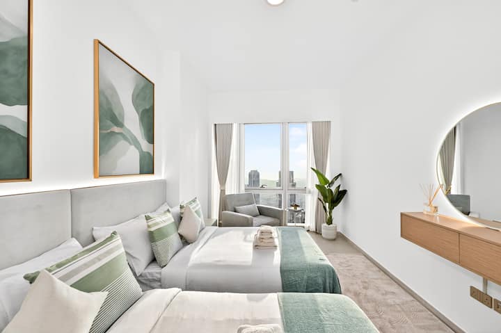 Sisi ni kampuni ya Uingereza, inayoendeshwa na familia inayotoa mkusanyiko uliopangwa kwa uangalifu wa fleti za kifahari katika maeneo makuu kama vile JVC yenye shughuli nyingi au Burj Royale ya kifahari. Tunachanganya maisha ya kifahari na mguso wa kibinafsi – kuhakikisha kila sehemu ya kukaa ni shwari, maridadi na haina usumbufu.