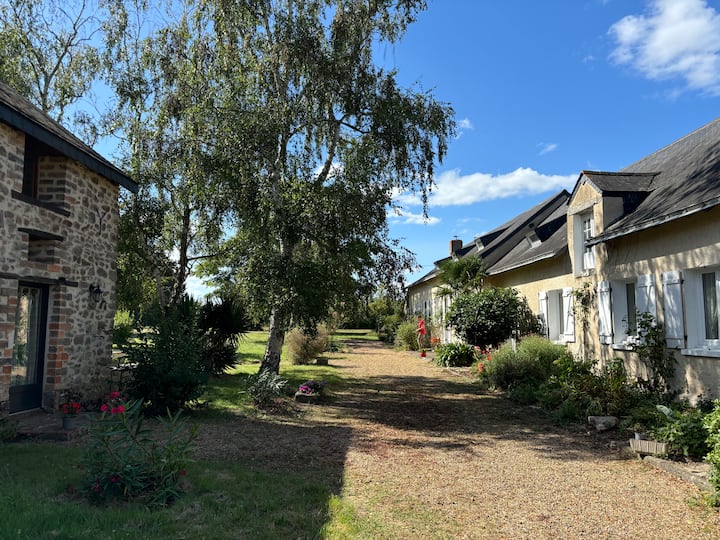 Furahia nyumba hii ndefu ya Angevin na jengo lake la nje ambalo linachanganya haiba ya ulimwengu wa zamani na starehe ya kisasa.