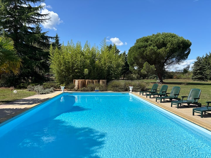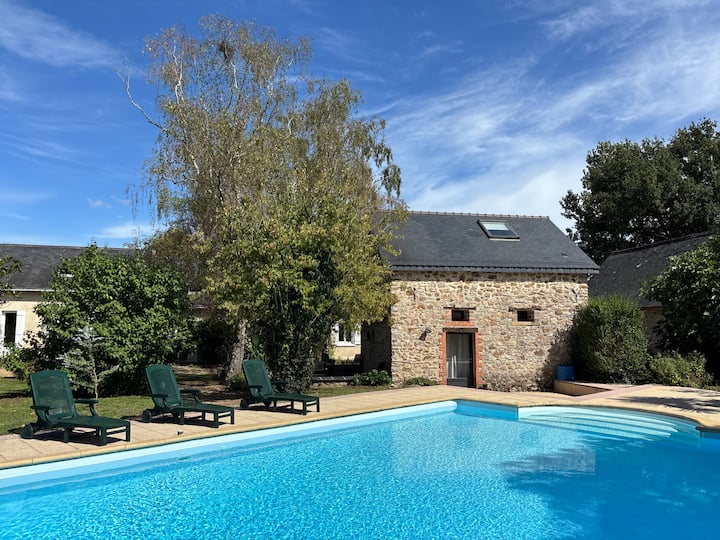 Nyumba iko katikati ya Bonde la Loire, karibu na Angers, katika bustani ya hekta 3.6 iliyozungukwa kikamilifu na bwawa na bwawa la ndani ya ardhi (lisilo na joto).
