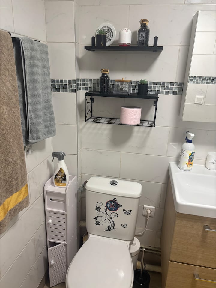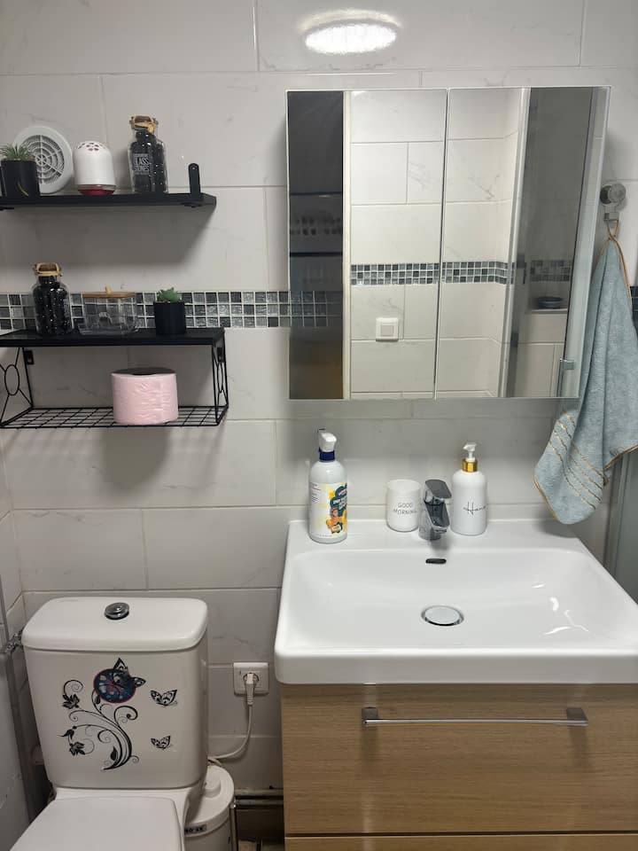 Bafu la studio na chumba cha kupikia