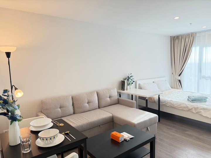 Umbali wa mita 300 kutoka kwenye treni ya chini ya ardhi ya Bangna/punguzo la kupangisha la chumba 1 cha kulala/upangishaji wa kila