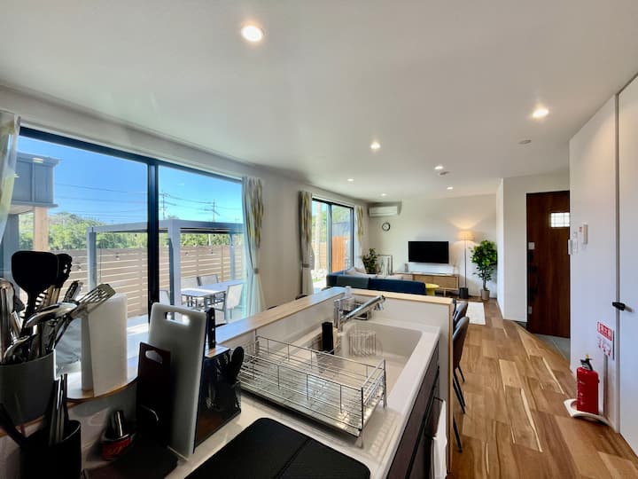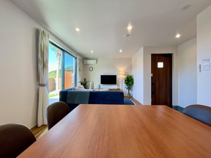 Resort na Sauna Mpya. Nyumba ya kupangisha iliyozungukwa na misitu na bahari ya Itoshima na Kameya. Inafaa kwa BBQ, gofu na safari za familia. Kameya A