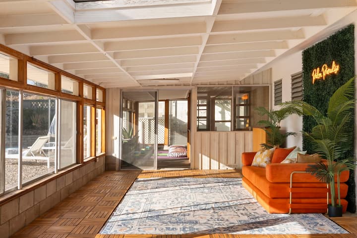 • Maisha ya nje: pumzika kando ya shimo la moto chini ya nyota, furahia kuoga kwenye beseni la maji moto karibu na bwawa la kuogelea, au pumzika kwenye jua kwa mapumziko ya mchana tulivu. Bwawa la kuogelea ni lenye kina kifupi (futi 2–3), linafaa kwa watoto kucheza kwa usalama.