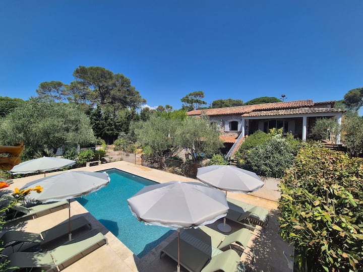 Pata uzoefu bora wa Riviera kutoka kwenye vila hii maridadi ya familia, iliyowekwa kikamilifu kati ya Cannes ya kupendeza na Mougins ya kupendeza. Dakika chache tu kutoka kwenye fukwe zenye mchanga na masoko mahiri, vila inatoa mtindo bora wa maisha wa Côte d'Azur. Furahia siku zilizozama jua kando ya bwawa la ajabu, pumzika kwenye bustani nzuri, au chunguza pwani ya Mediterania. Ukiwa na vipengele salama, vinavyofaa familia na eneo kuu karibu na uzuri wa kifahari na Mougins wa Cannes, hii ni likizo yako isiyoweza kusahaulika ya Kusini mwa Ufaransa!