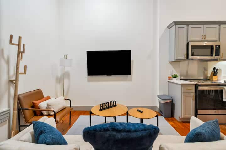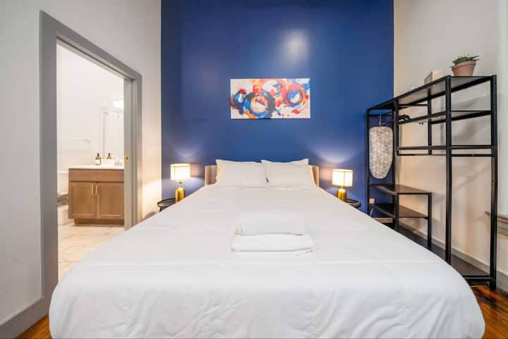 - Jengo liko karibu na barabara kuu yenye shughuli nyingi na tunapojitahidi kuhakikisha ukaaji wenye starehe, tafadhali kumbuka kwamba kelele fulani za trafiki zinaweza kusikika (tunatoa plagi za masikio na mashine nyeupe ya kelele kwa ajili ya starehe). Kwa kuongezea, jengo liko katika kitongoji kinachokuja, ambayo inamaanisha kuna maeneo ambayo bado yanaendelezwa na wakati mwingine unaweza kukutana na watu wasio na makazi. Tunapendekeza uendelee kuzingatia, kama unavyofanya katika eneo lolote. Maegesho nyuma ya jengo ni bila malipo na yanadhibitiwa na jiji; hata hivyo, yanaweza kuzingatiwa kuwa yana mwanga hafifu. Kwa ujumla, ni jumuiya changamfu na changamfu!