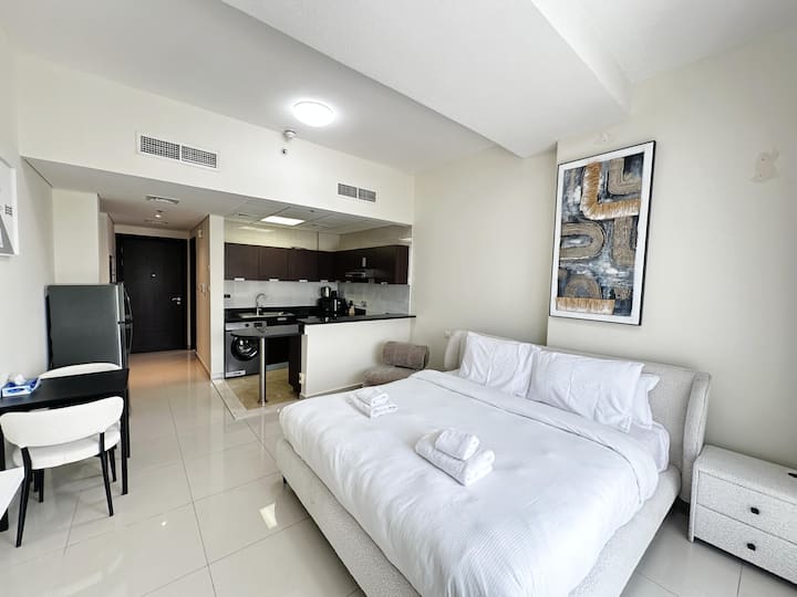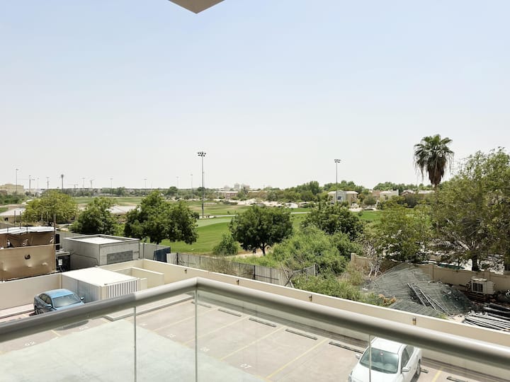 fleti nzuri ya studio yenye mwonekano wa uwanja wa gofu