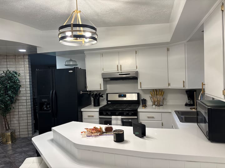 Ingia ndani, ngoja nikuonyeshe. Jiko letu zuri lenye vifaa na vyombo vyote unavyohitaji ili kuandaa milo. Kaa chini ya kisiwa ili ushiriki vicheko wakati wa kupika au kupata vitafunio vya haraka. Chumba cha kufulia kitakuwa na mashine kamili ya kuosha, mashine ya kukausha na vifaa vya kufanya kuwasili nyumbani kusiwe kazi ya kufulia. Kila chumba cha kulala kitakuwa na televisheni na eneo zuri kwa ajili ya kulala vizuri usiku. Vyumba viwili vya kulala vina kitanda aina ya queen na cha tatu kina kitanda cha Mchana chenye kitanda cha kuvuta ili kulala wageni sita. Chumba cha kulala cha msingi kina bafu la kujitegemea lenye bafu lililosimama. Bafu zuri lenye ukubwa kamili kwenye ukumbi, karibu na vyumba vingine vya kulala ili kuhakikisha kila mtu yuko tayari kwa siku ya mchezo! Uko tayari kutazama michezo unayopenda au filamu ya familia ya kufurahisha?? Kisha nenda kwenye sebule yetu yenye starehe ambapo tuna televisheni ya "65", makochi yenye starehe ya kupumzika na kupumzika na vitafunio na kinywaji. Iko maili 2 kutoka Notre Dame, maili 1 kutoka University Park Mall, maili 1-2 kutoka kwenye mikahawa mingi. Kuanzia chakula cha haraka hadi kula chakula kama Ruth Chris, Corndance, LongHorn, SoHo. Baa nzuri na za kufurahisha kama Bar Louie, The Lucky Hatchet ( jaribu bahati yako katika kutupa shoka), Stikes na Spares. Maili 3 kwenda katikati ya mji South Bend, Memorial na St Joseph Hospitals. Nyumba yetu ni mawe yanayotupwa mbali na yote ambayo South Bend inatoa.