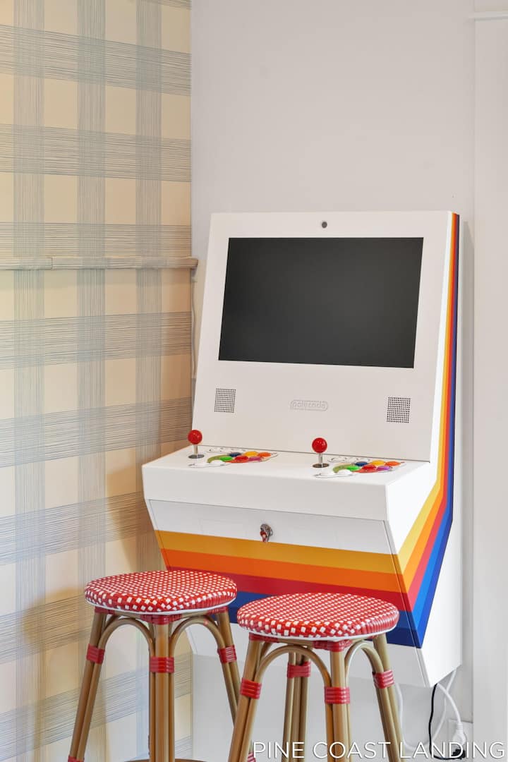 Chumba cha Michezo: Kiko kwenye ghorofa ya chini, hiki ndicho kitovu rasmi cha mashindano. Wape changamoto wafanyakazi wako kwenye mchezo wa ustadi kwenye meza ya biliadi ya ukubwa kamili au ufanye safari ya kumbukumbu ya nyuma kwa kutumia mashine ya michezo ya kawaida iliyojaa michezo ya zamani.