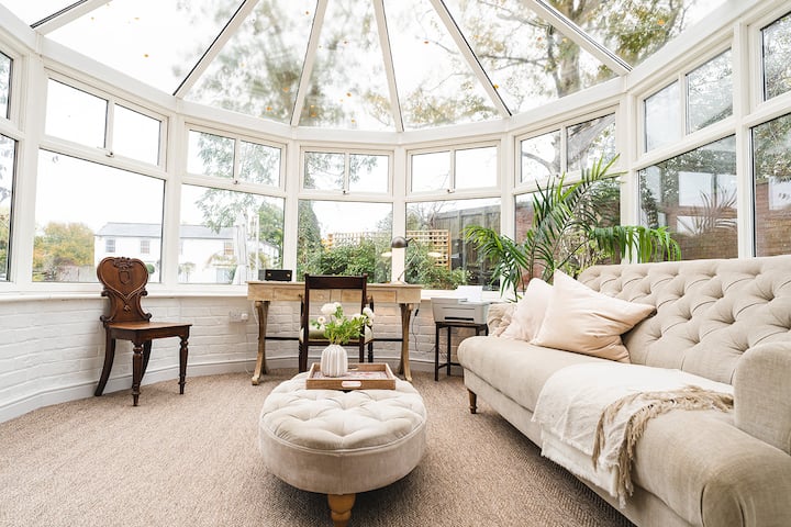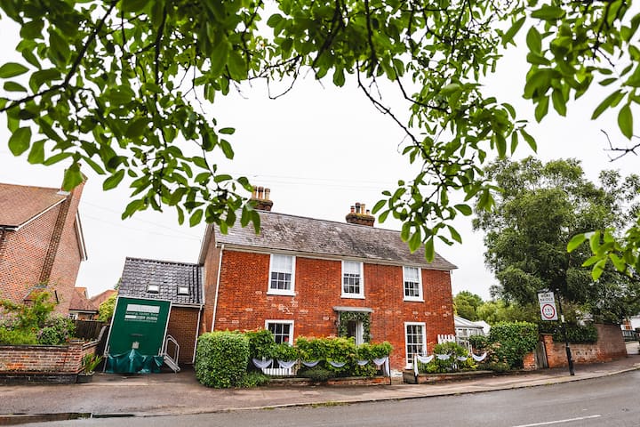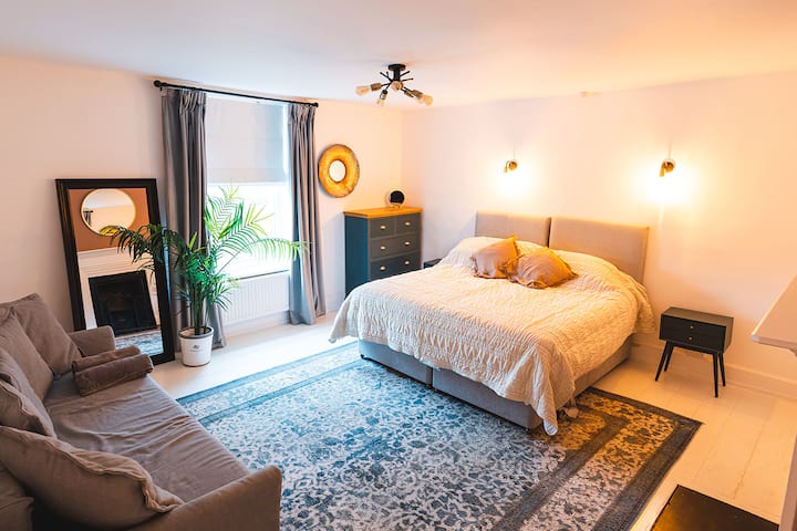 Ingawa nyumba iko kwenye barabara kuu, bustani ya kando ya mto ni ya amani kabisa — ni mahali pa kweli pa kupumzika na mandhari maridadi na haiba isiyo na mwisho. Eneo hilo ni bora pia: ni umbali wa dakika mbili tu kutembea hadi kituo cha barafu, kahawa, au piza, na karibu dakika nane hadi kwenye baa na maduka ya eneo husika. Kukiwa na matembezi mengi ya kupendeza karibu, nyumba hii nzuri ya kihistoria ni mahali pazuri kwa ajili ya mikusanyiko ya familia, likizo za makundi au sherehe ndogo.
