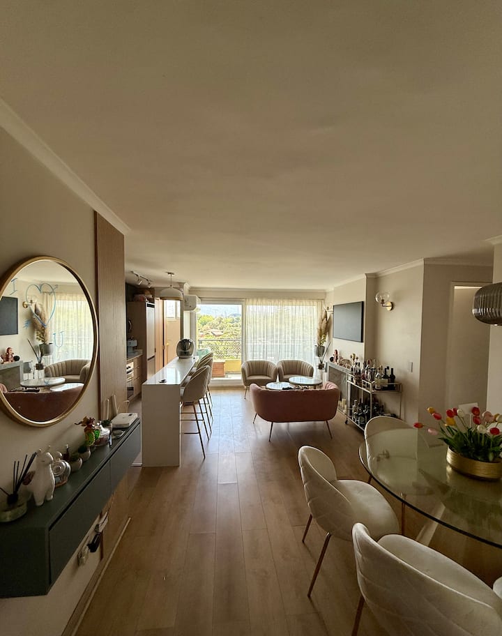 Las Condes: Fleti ya Smart + Eneo la kufanyia shughuli za nje na Mandhari ya Bustani