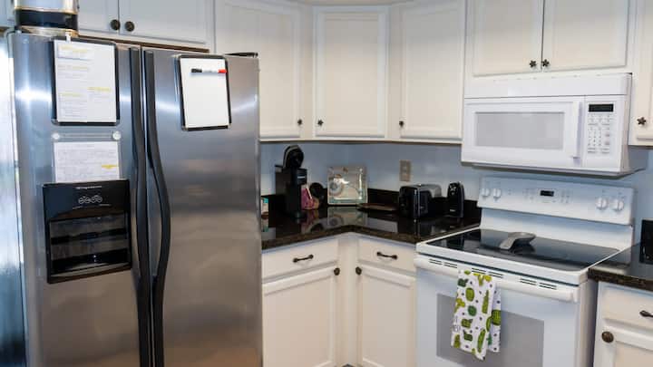 • Tuna nafasi ya maegesho ya bila malipo kwa magari mawili madogo katika maegesho ya nje ya barabarani au SUV moja kubwa na labda gari la gofu nyuma hadi mbele. Kwa bahati mbaya, nyumba hii haina maegesho ya wageni na gari la gofu linachukuliwa kuwa gari
