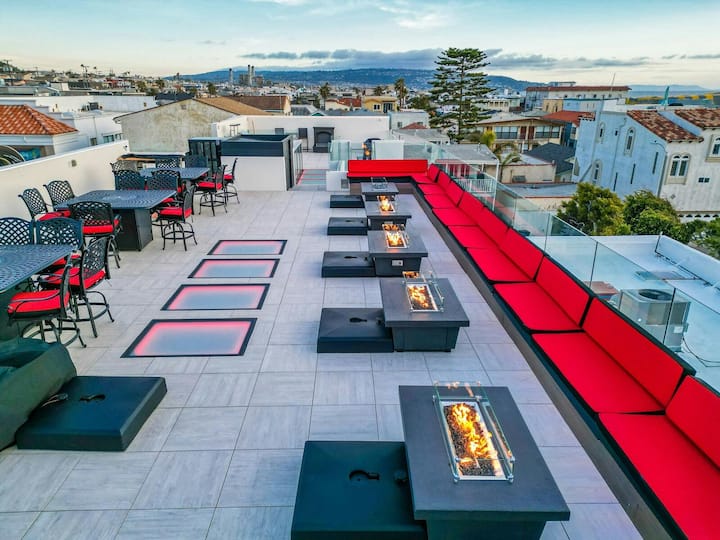 Sisi ni hoteli mpya zaidi ya kidijitali ya Hermosa Beach, iliyo na vidhibiti mahiri vya teknolojia, mlango usiohitaji ufunguo na taa za kiotomatiki, mapazia na kiyoyozi. Jioni, choma nyama kwenye jiko la kuchomea nyama au uwaombe wafanyakazi wakuelekeze kwenye maeneo maarufu ya karibu. Hakikisha unarudi kwa wakati ili kuona machweo ukiwa umeketi kando ya moto kwenye paa.