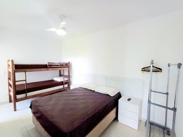 Utakuwa na wakati mzuri katika Kondo hii iliyo na mabwawa 5 ya kuogelea, chumba cha michezo na uwanja wa tenisi wa ufukweni, iliyo umbali wa mtaa 2 tu kutoka ufukweni wa Perequê Açu.