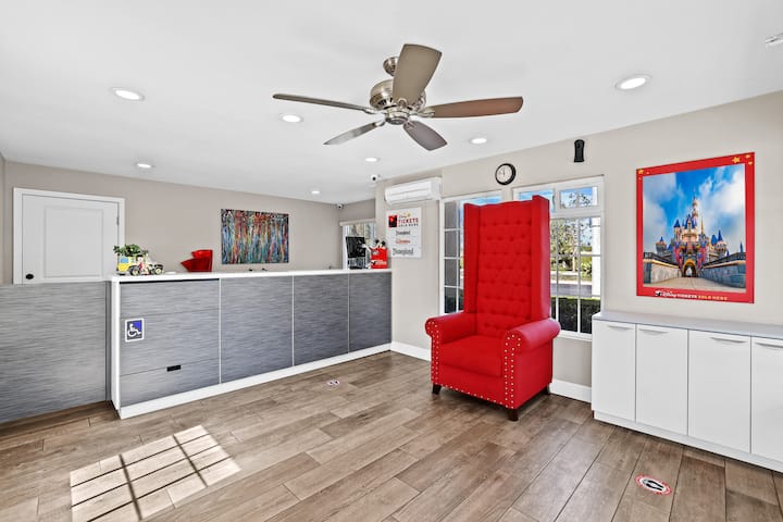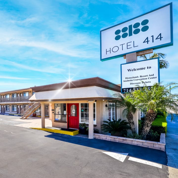 Hoteli ya 414 Anaheim iko karibu na kona kutoka Disneyland na ni matembezi mafupi kwenda Disneyland. Kituo cha Mikutano cha Anaheim kiko chini ya maili 2. Tunauza pasi za punguzo kwa Disneyland Resort. Iwe unakuja Anaheim kwa ajili ya Mbuga au kutembelea viwanda vya pombe vya eneo husika, tuko katikati ya yote. Vyumba vyetu vyote havivuti sigara na vina sakafu ya laminate, ubatili wa quartz na samani za kisasa. Kila chumba kinateuliwa kwa ladha na friji na mikrowevu, televisheni ya kebo na vituo vya mahitaji ikiwa ni pamoja na HBO, vikausha nywele na vifaa vya kupiga pasi. Hoteli hii inatoa ufikiaji wa Wi-Fi bila malipo. Uwanja wa Malaika na Kituo cha Honda ni umbali wa dakika 5 tu kwa gari. Knott 's Berry Farm ni mwendo wa dakika 15 kwa gari. Ufukwe wa Laguna, Newport Beach na Huntington Beach ni mwendo wa dakika 20 kwa gari kutoka kwenye hoteli.