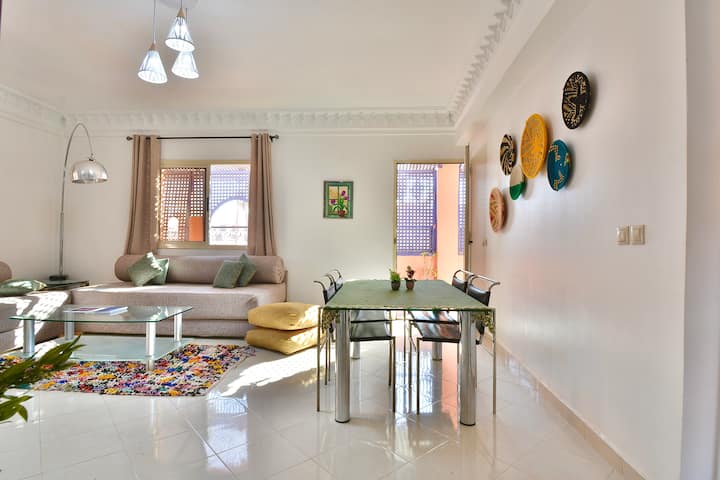 Fleti nzuri yenye nafasi kubwa katikati ya Guéliz