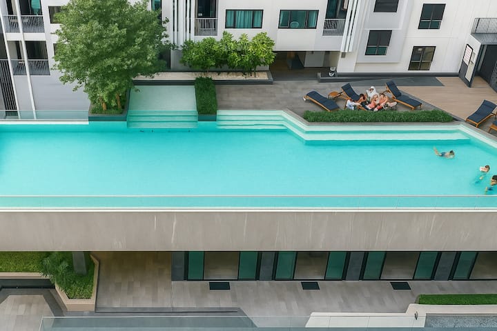 The BASE Central Pattaya Fleti ya msingi ya ufukweni katika katikati ya jiji Ukodishaji wa kila siku/ukodishaji wa kila mwezi Barabara ya watembea kwa miguu karibu na ufukwe