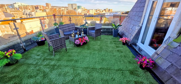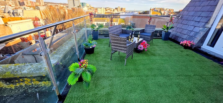 Karibu kwenye The Mews at Bartholomews: mapumziko yako ya starehe, ya kati, ya kimaridadi na ya kisasa na fleti ya bustani ya juu ya paa katikati ya Brighton. Inafaa kwa watalii, wasafiri wa kikazi, wakandarasi, watu wanaohama, wanandoa na familia.