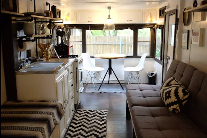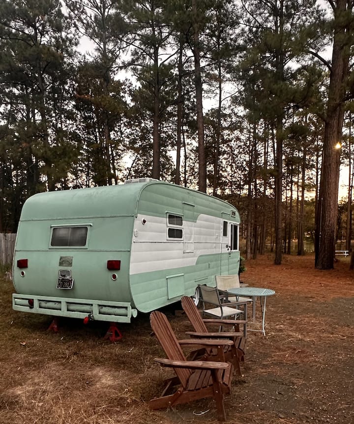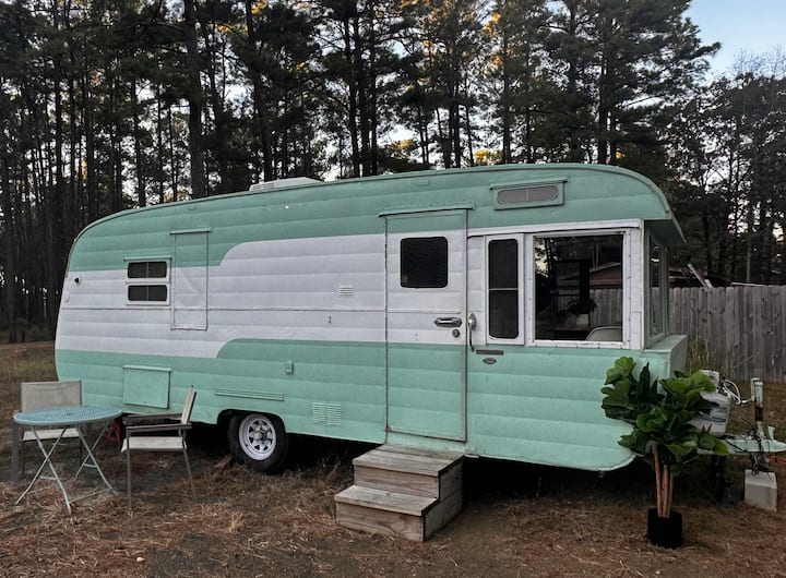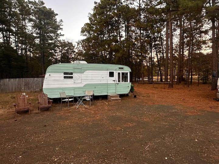Gari la Mapumziko la 1955 la Traveleze Vintage katika Woods