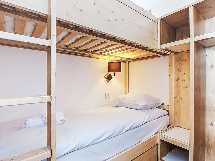Makazi "Les Olympiades", maghala 7. Katikati ya Val Thorens, katika risoti, katika eneo la kati, lenye shughuli nyingi, lenye jua katika wilaya ya makazi, mita 100 kutoka eneo la kuteleza thelujini. Katika tata: lifti, chumba cha kuhifadhia skis. Katika majira ya baridi: tafadhali chukua minyororo ya theluji. Maegesho ya magari ya umma yenye urefu wa mita 50, ya ziada. Kituo cha kuchaji kielektroniki. Duka, mboga, maduka makubwa, kituo cha ununuzi, mgahawa wa mita 5, baa mita 50, duka la mikate, mkahawa mita 5, eneo la watembea kwa miguu mita 2, kituo cha basi "navette gratuit" mita 200, bwawa la kuogelea la nje mita 50. Kituo cha michezo mita 10, gari la kebo mita 150, lifti ya kiti mita 50, lifti ya gondola mita 10, miteremko mita 50, kukodisha skii mita 5, kituo cha basi cha skii mita 150, shule ya skii mita 100, uwanja wa barafu mita 500. Vivutio vya karibu: Kituo cha Sportif mita 100. Maeneo maarufu ya skii yanaweza kufikiwa kwa urahisi: domaine des 3 Vallées mita 100, Val Thorens – Orelle mita 100. Maziwa maarufu yanaweza kufikiwa kwa urahisi: Lac du Lou 800 m, Lac du Menuires 600 m. Tafadhali kumbuka: burudani katika msimu. Inafaa kwa familia, vifaa vya mtoto kwa ombi (vya ziada). Mmiliki hakubali makundi yoyote ya vijana. Basi la skii (bila malipo). Ikiwa kuna hali nzuri ya theluji, nyumba inafikika kwenye skis. Fleti iko katika eneo lenye idadi ndogo ya watu. Malazi ya ziada yanaweza kuwekewa nafasi.
