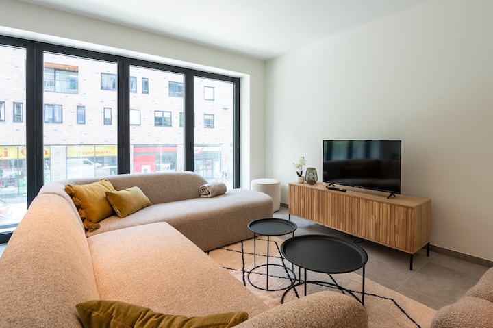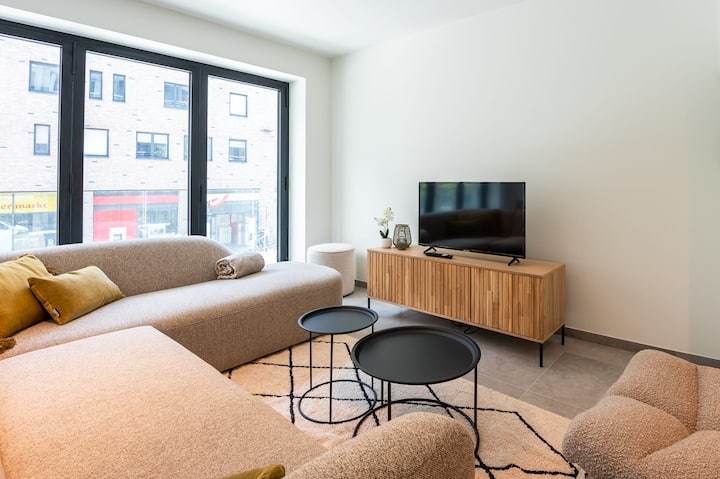 Karibu nyumbani kwako mbali na nyumbani katikati ya Oostende! Fleti hii mpya kabisa, iliyo kwenye ghorofa ya kwanza, imeundwa ili kutoa starehe na urahisi kwa hadi wageni watano. Ukiwa na vyumba viwili vya kulala vyenye nafasi kubwa, jiko lenye vifaa kamili na sebule yenye starehe sebuleni, utapata mchanganyiko kamili wa mtindo na utendaji. Fleti ina bafu zuri lililo na taulo safi, jeli ya bafu na shampuu, hivyo kufanya iwe rahisi kwako kukaa na kufurahia ukaaji wako. Ufikiaji huimarishwa na lifti ndani ya jengo, na kuifanya iwe upepo wa kuja na kuondoka.
