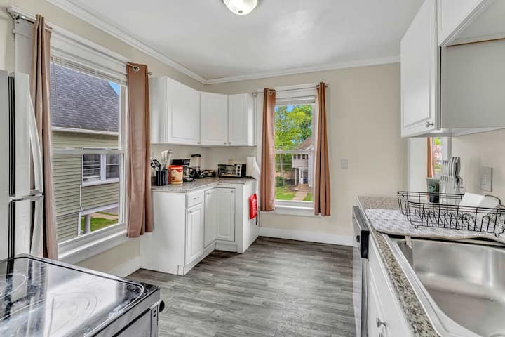 Fleti hii maridadi iko katika hali nzuri na inatoa sakafu nzuri ya mbao ngumu iliyokarabatiwa, vyumba vya ukubwa wa juu, ukumbi upande na jiko la kuchomea nje kwenye ua. "2ND BASE APT 2" ni ghorofa ya pili (yenye kiyoyozi kamili) fleti ya vyumba 3 vya kulala iliyo na jiko, chumba tofauti cha kulia, sebule yenye Televisheni ya Skrini Tambarare ya 50"na bafu moja kamili. Vyumba vyote vya kulala vina televisheni za skrini tambarare pia na chumba kimoja kimewekwa na kitanda cha kifalme na vyumba vingine viwili vya kulala vina kitanda cha kifalme. Kwa familia / marafiki ambao wanataka kutangamana pamoja, "2 BASE APT 1" iko kwenye ghorofa ya kwanza na inalala 6 pia, ikiwa na mpangilio sawa halisi.