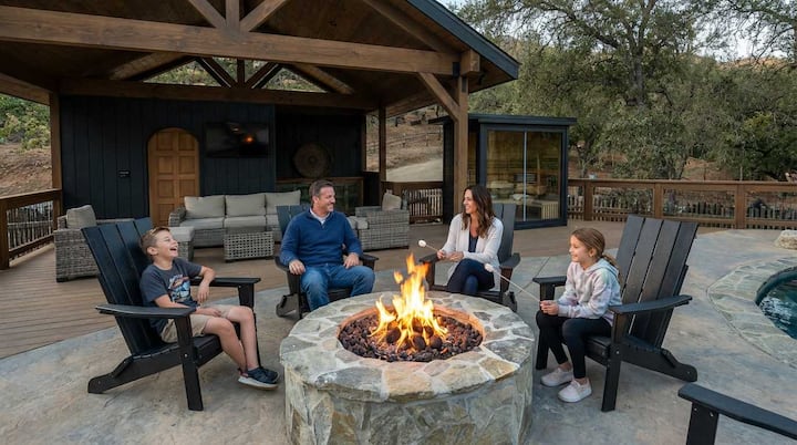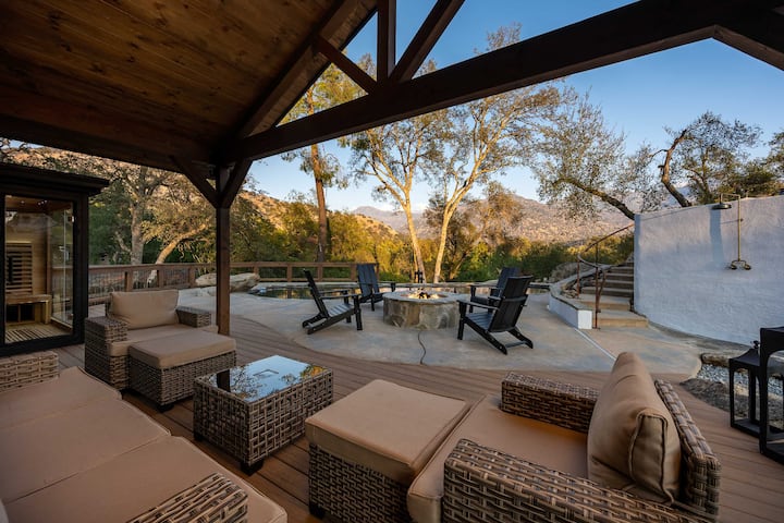 Toka nje kwenye oasisi yako ya kujitegemea iliyo na bwawa linalong'aa, beseni la maji moto la kupumzika, shimo la moto la kustarehesha na baraza la nje lenye runinga, bora kwa ajili ya kupumzika, kuchoma nyama au kutazama filamu chini ya nyota. Likiwa dakika chache tu kutoka Hifadhi ya Kitaifa ya Sequoia, mapumziko haya hutoa usawa wa mwisho wa jasura na utulivu, msingi wako kamili wa kuchunguza, kupumzika na kuungana tena na mazingira ya asili.