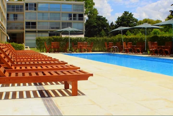Chumba kimoja na Mwonekano wa Bwawa la Kuogelea + Karakana Iliyofunikwa