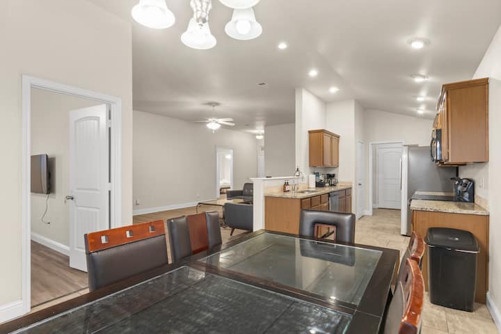 Mimi ni Kevin. Ninapaka rangi kucha, ninapenda mazoezi ya viungo na kwa kawaida ninafanya utafiti wa kitu kisichokuwa na mpangilio saa 8 usiku. Ninakaribisha watu wengi wanaosafiri kwa ajili ya kazi, kwa hivyo ninajaribu kufanya maeneo yangu yawe rahisi, safi na rahisi kukaa. Wakati sifanyi kazi, niko na mbwa wangu Ace na Krypto au kutafuta kitu kizuri cha kula. Kwa ujumla niko huru, niko hapa kujaribu kuhakikisha watu wanapata ukaaji mzuri.