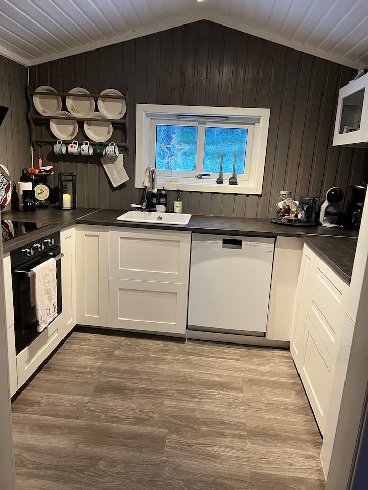 Nyumba hii ya shambani inajumuisha suluhisho za vitendo na mazingira ya kustarehesha na ya kuvutia. Iwe unataka kupumzika mbele ya runinga, kupika pamoja, au kufurahia asubuhi tulivu ukiwa na kahawa mbele ya meko sebuleni – hapa utapata kila kitu unachohitaji.