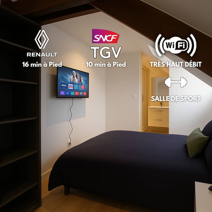 Nyumba hii huko Le Mans imeundwa ili kutoshea familia, makundi ya marafiki au timu za kitaaluma, huku ikihakikisha faragha ya kila mtu kwa sababu ya vyumba vyenye mabafu ya kujitegemea.
