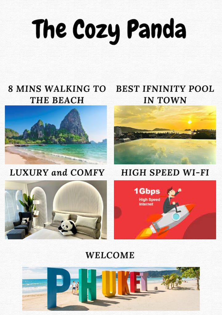 Cozy Panda Patong | Studio ya Kifahari | Bwawa la Infinity