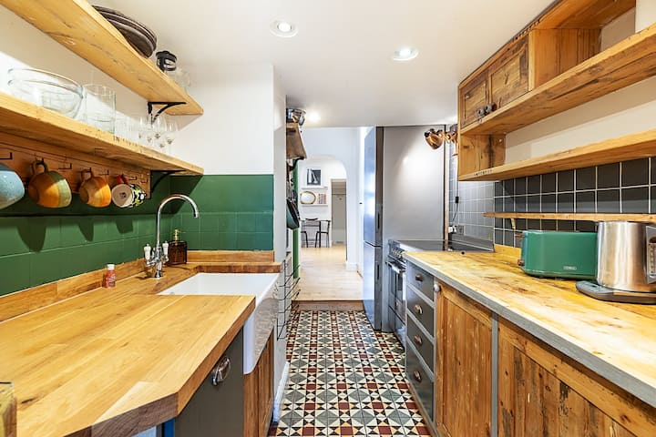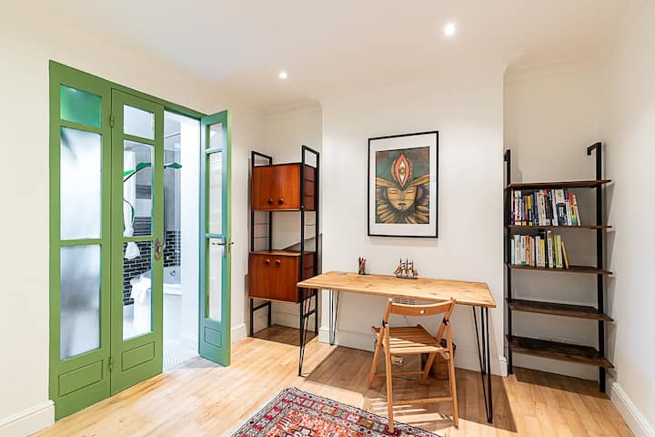 Fleti hii ya ghorofa ya chini yenye sifa nzuri hutoa makazi maridadi na yenye starehe kwa ajili ya kukaa London, bora kwa wageni wanaotafuta nyumba tulivu, inayoongozwa na ubunifu na nafasi ya nje. Mapambo ya ndani yaliyofanywa kwa umakini, bustani ya kujitegemea na mazingira ya amani ya makazi hufanya hapa kuwa mahali pa mapumziko ya kukaribisha huku ukiwa karibu sana na mojawapo ya maeneo mazuri zaidi ya kijani ya London.