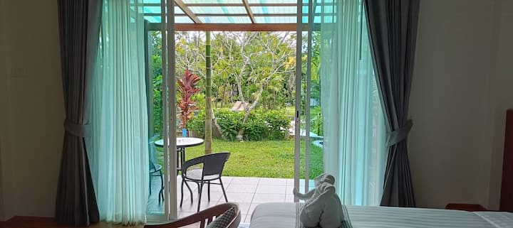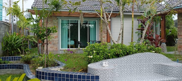 Baan Rom Pruk iko katika eneo la Naiyang, umbali wa kilomita 1.5 tu hadi pwani nzuri ya Naiyang kutoka hapa. Tunatarajia kuwa na nafasi ya kukukaribisha ukae na kupumzika katika nyumba zetu zisizo na ghorofa zenye kupendeza na tulivu:)