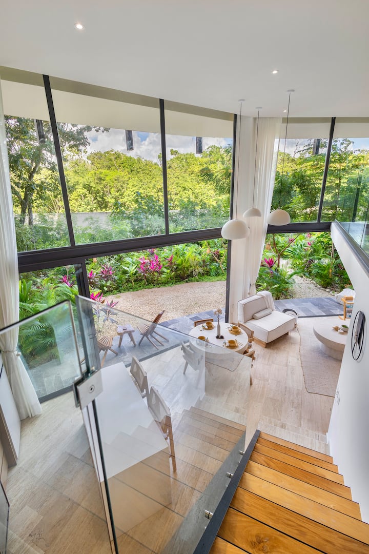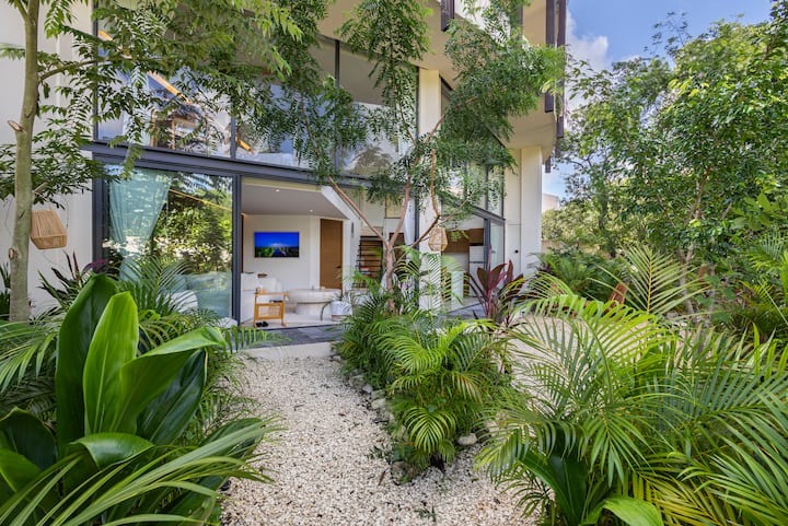 Pumzika katika PH Super Loft @ Mistiq Gardens 2, roshani iliyobuniwa kwa uzuri iliyo katika Msitu wa Tulum. Sehemu hii imetengenezwa kwa uangalifu kwa kutumia vifaa vya asili vyenye joto, mikwaruzo laini na umaliziaji wa hali ya juu, na kuunda mazingira tulivu na ya faragha, yanayofaa kwa wanandoa au wasafiri wanaoenda peke yao.