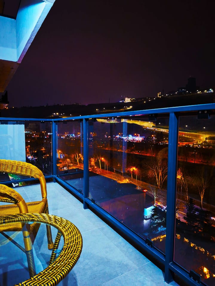 Fleti ya Riverside yenye nafasi kubwa katika Balcony ya Kati ya Tbilisi