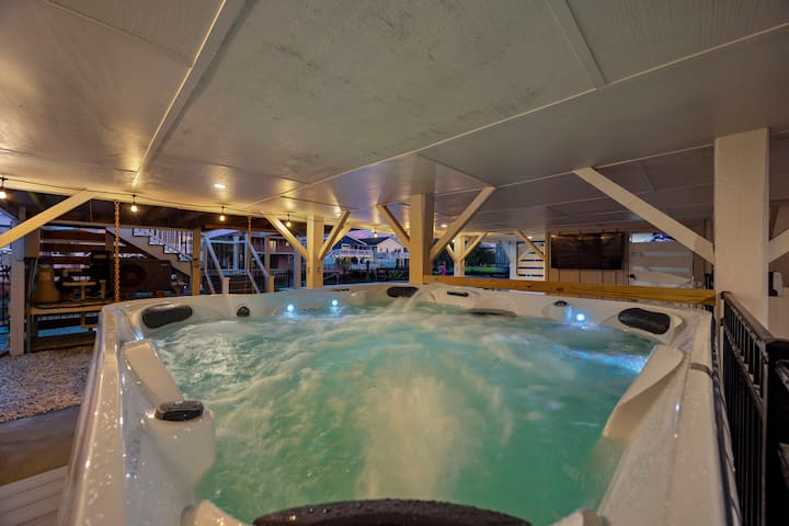 Iwe unaendesha kayaki kutoka kizimbani cha kujitegemea, unajiloweka kwenye beseni la maji moto lililofunikwa, unacheza raundi ya Golden Tee au PS5, au unachoma nyama baada ya siku ukiwa ufukweni, nyumba hii inakuletea furaha—na nafasi ya kutosha ya kuifurahia.