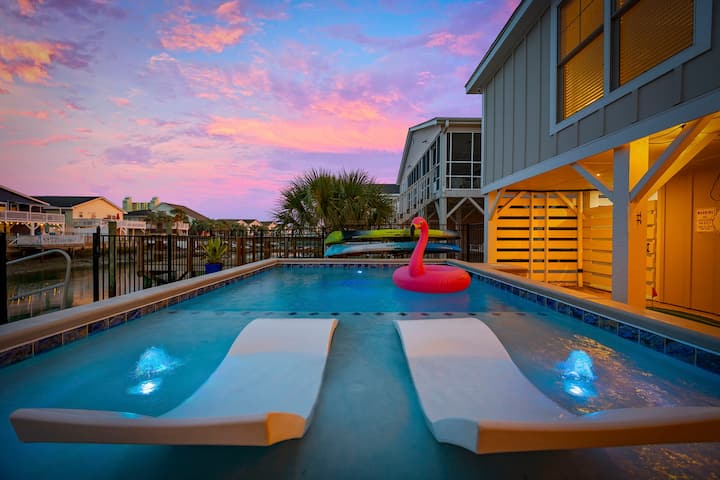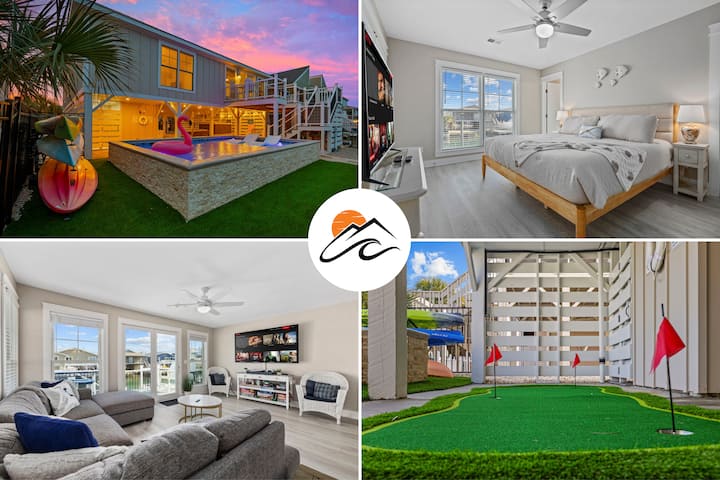 Sehemu kubwa ya mapumziko ya mbele ya chaneli 5BR yenye bwawa la kuogelea lenye joto, beseni la maji moto lililofunikwa, kayaks, eneo la kijani kibichi, na nafasi ya watu 14—inafaa kwa familia, uvuvi, na siku za ufukweni pamoja na vitu vyote vya ziada!