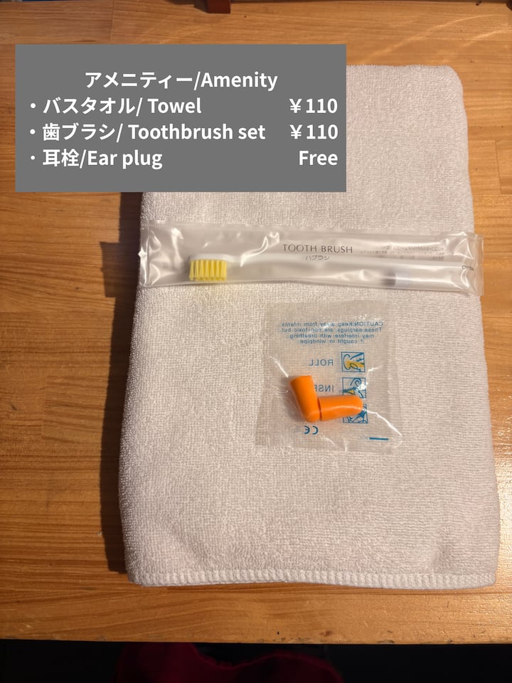 Hatuna vistawishi (taulo, miswaki, yukata, nk) katika "Iza ENOSHIMA Guest House & Bar".
