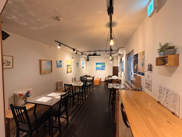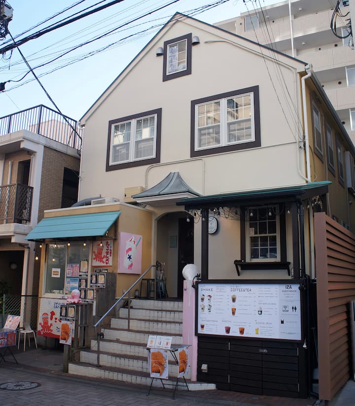 Nyumba ya Wageni ya Iza Enoshima na Baa ni umbali wa dakika 3 kwa miguu kutoka Enoden "Kituo cha Enoshima", lango la kwenda Enoshima. Iko katikati ya "Mtaa wa Ununuzi wa Mtaa wa Katase Sobana" kwenye barabara kutoka Kituo cha Enoshima hadi Kituo cha Enoshima, na pia ni eneo zuri la kutoka baharini kutoka kwenye kituo. Pamoja na kutazama mandhari huko Enoshima na Kamakura, ni kituo cha maeneo ya baharini huko Shonan!