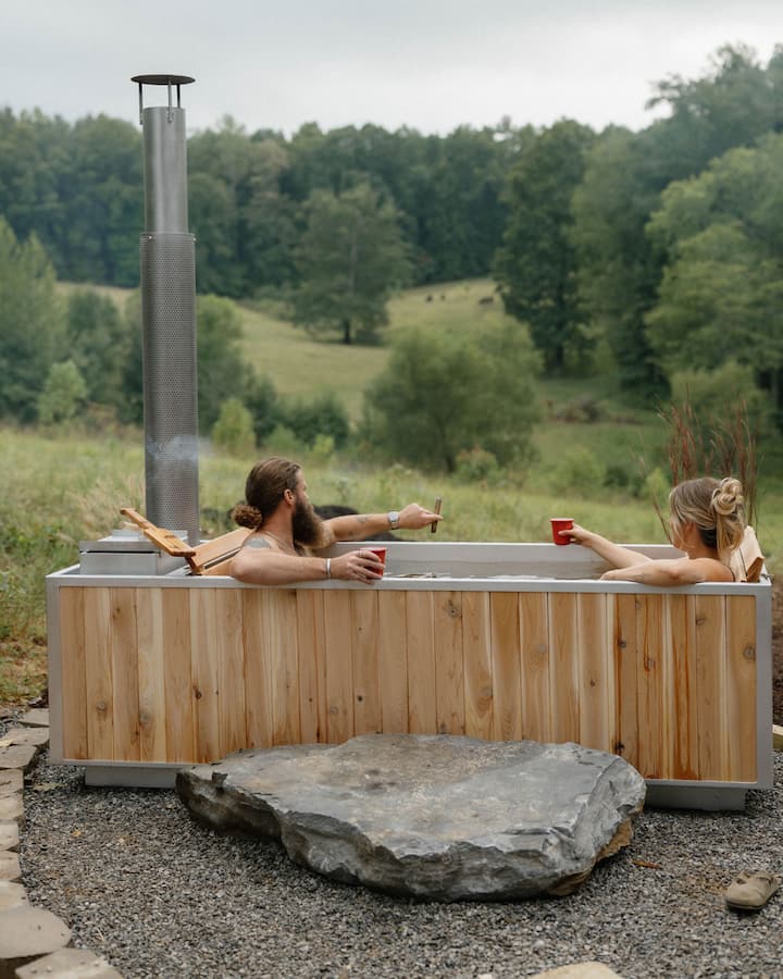 Nyumba ya Mashambani ya Kupumzika yenye Sauna ya Moto wa Mbao na Beseni la Kuogea la Moto